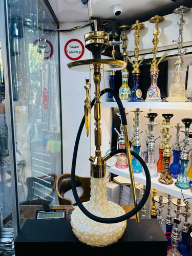 ست قلیان کرنو بزرگ مدل مادرید طلایی شیشه آیس نسکافه ایی