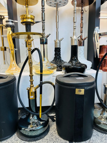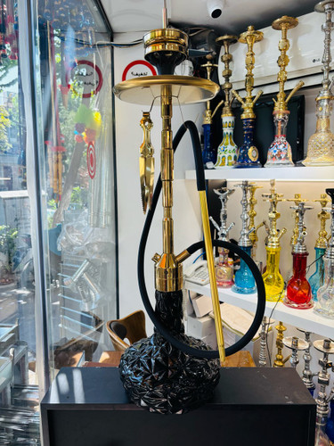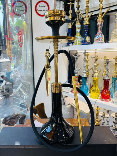 ست قلیان کرنو بزرگ بدنه طلایی شیشه مشکی