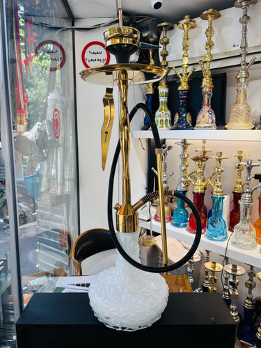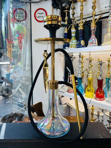 ست قلیان کرنو بزرگ مدل پاریس طلایی شیشه جیوه ایی