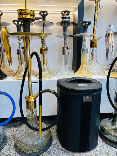 ست قلیان کرنو بزرگ مدل مادرید طلایی شیشه آیس مشکی