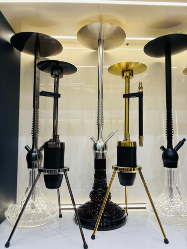 ست قلیان کرنو بزرگ بدنه طلایی شیشه مشکی
