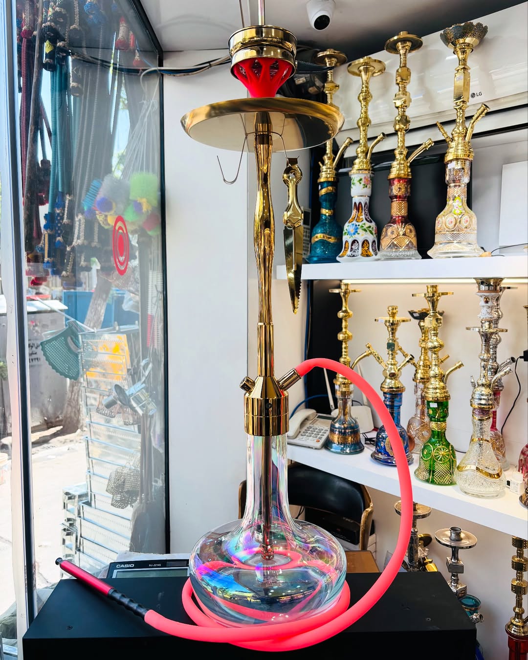 ست قلیان کرنو بزرگ مدل پاریس طلایی شیشه جیوه ایی