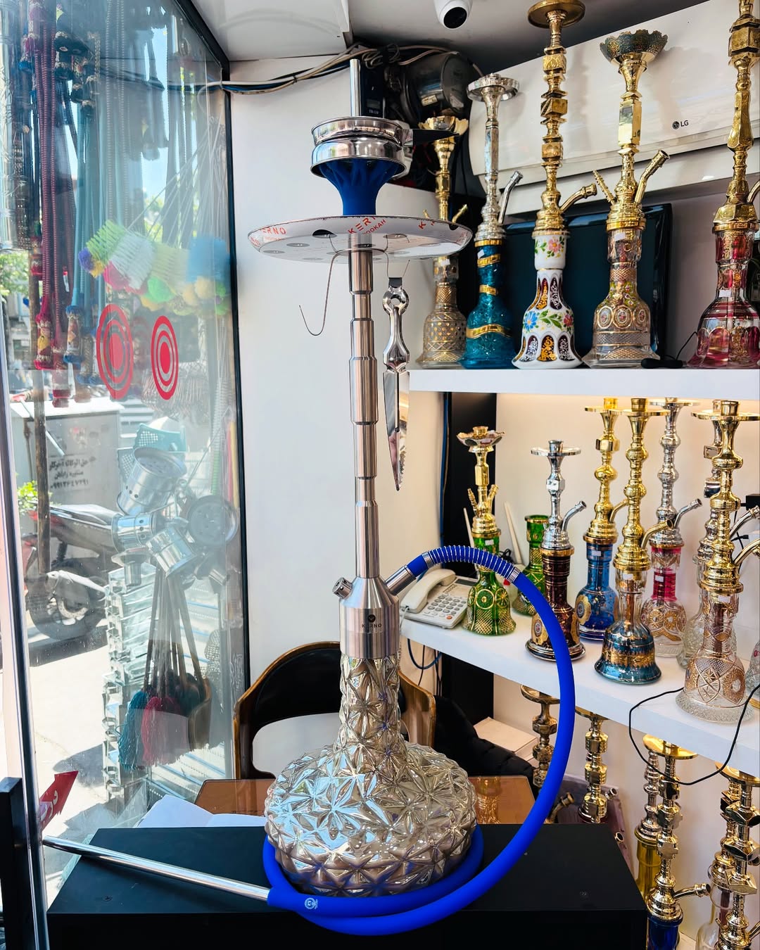 ست قلیان کرنو بزرگ مدل مادرید آبی شیشه آیس سرمه ایی