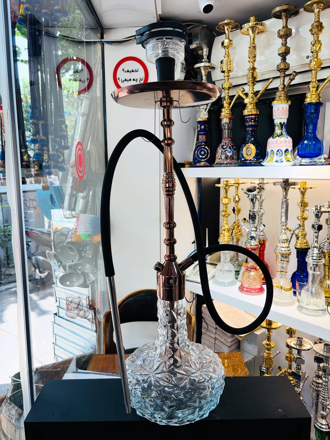 ست قلیان کرنو بزرگ مدل تگزاس رزگلد شیشه شفاف