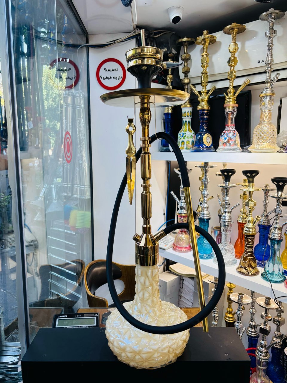 ست قلیان کرنو بزرگ مدل مادرید طلایی شیشه آیس نسکافه ایی
