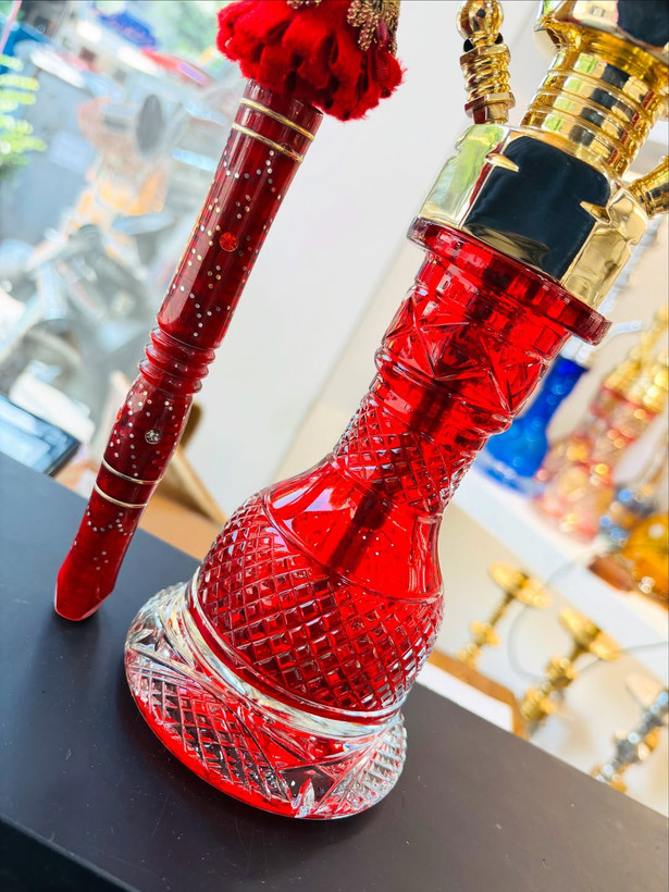 سیسمونی تنه سیسمونی شِمش کامل وزن تنه:1/650KG ارتفاع تنه:16CM شیشه تراش خورده رنگ ثابت سری سفال نقاشی با بادگیر برنجی شلنگ چرم طبیعی با لبی نقره کوب ارتفاع:کل کار:42CM 5/300
