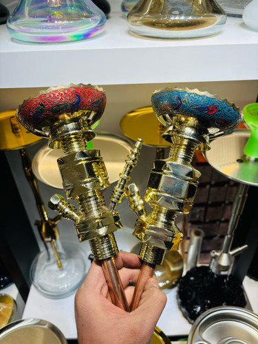 ست قلیان برنجی دو مرتبه شمش آبکاری قلم