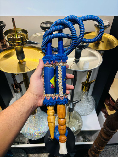 ست قلیان کرنو بزرگ مدل مادرید آبی شیشه آیس سرمه ایی