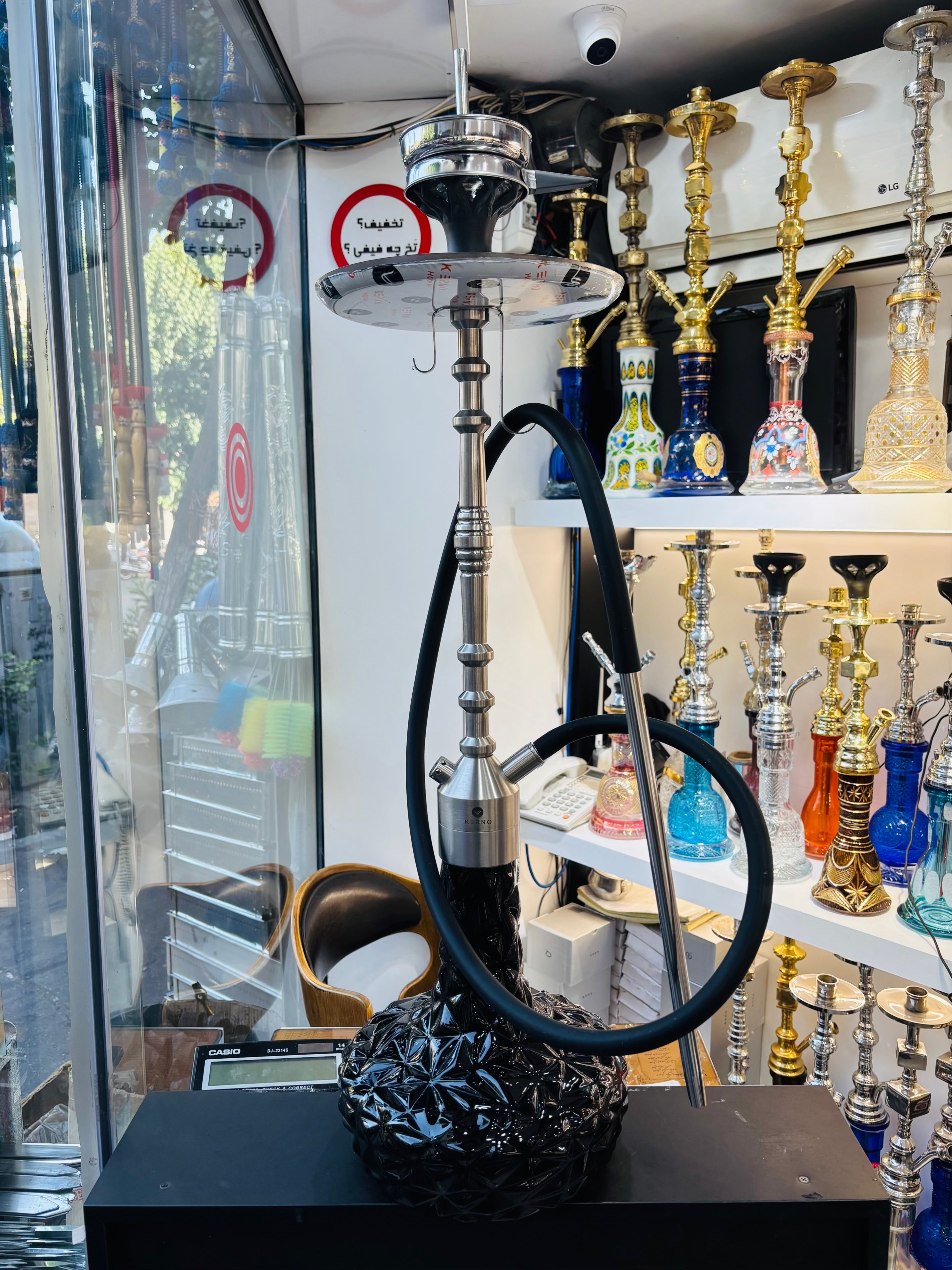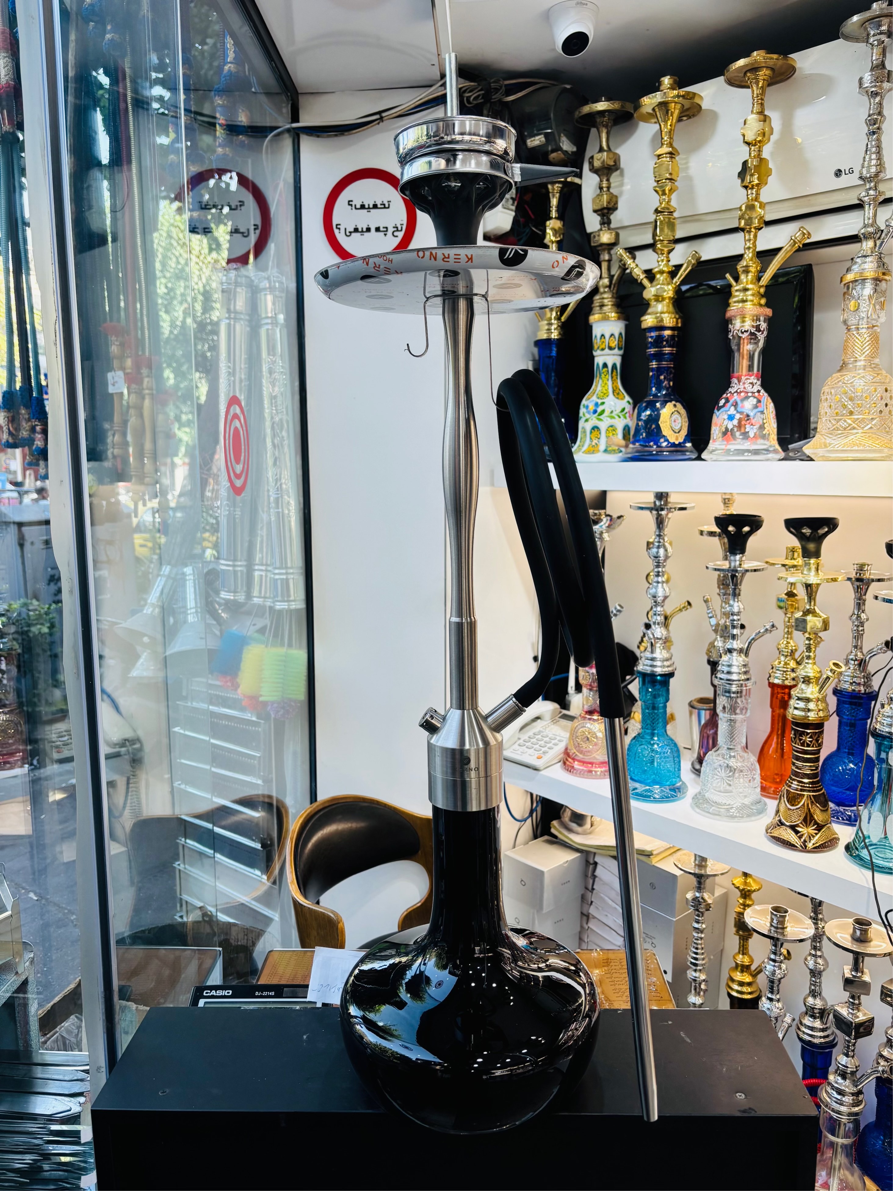 ست قلیان کرنو بزرگ مدل نیویورک سیلور شیشه مشکی