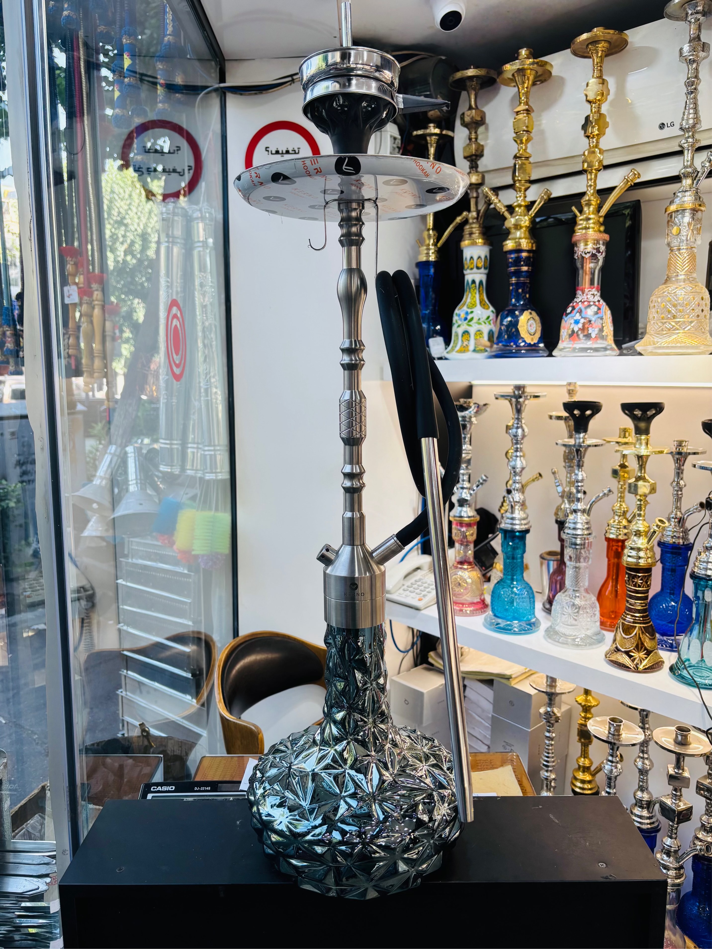ست قلیان کرنو بزرگ مدل پاریس سیلور شیشه آیس مشکی