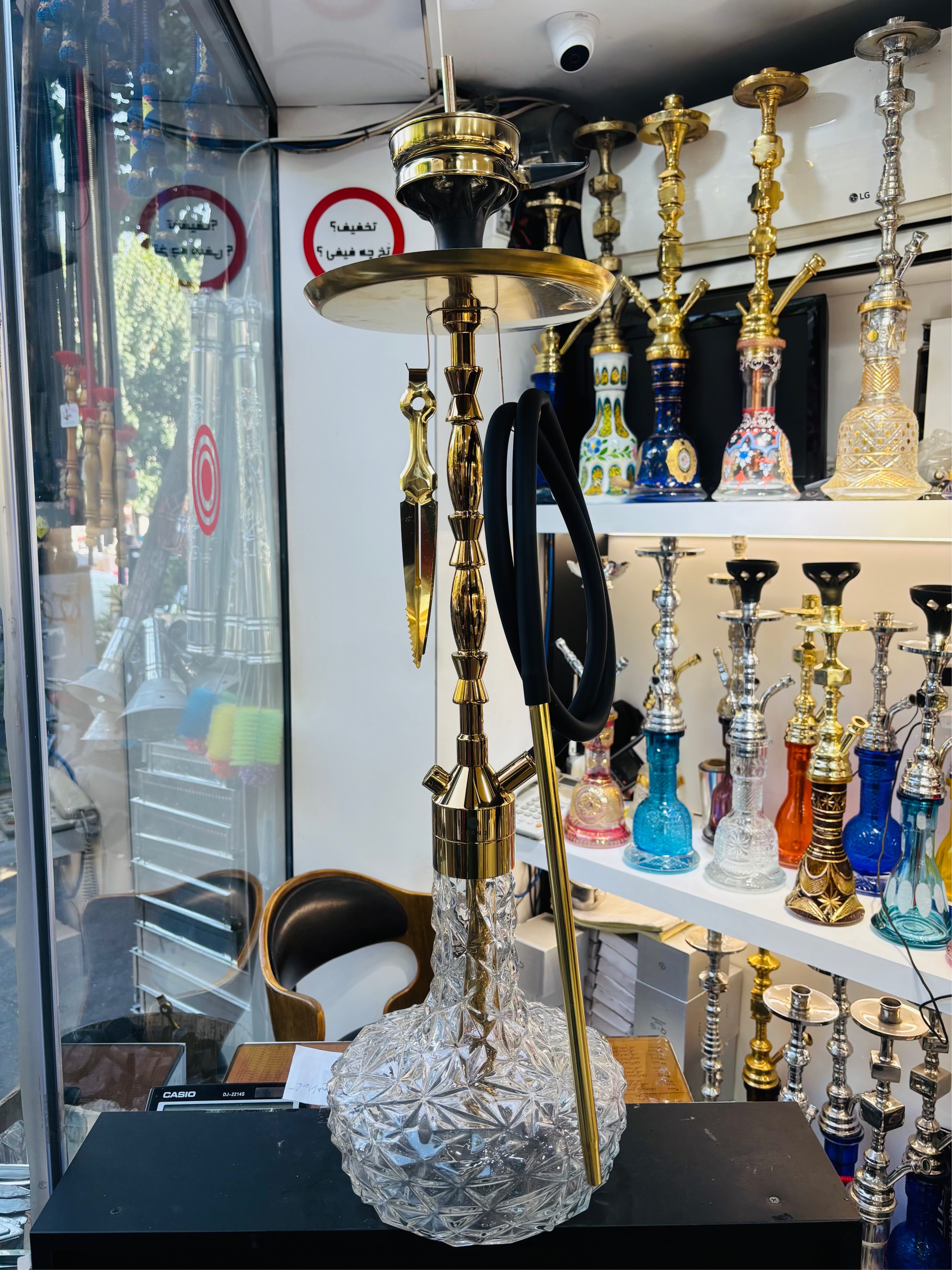 ست قلیان کرنو بزرگ مدل لندن طلایی شیشه آیس شفاف
