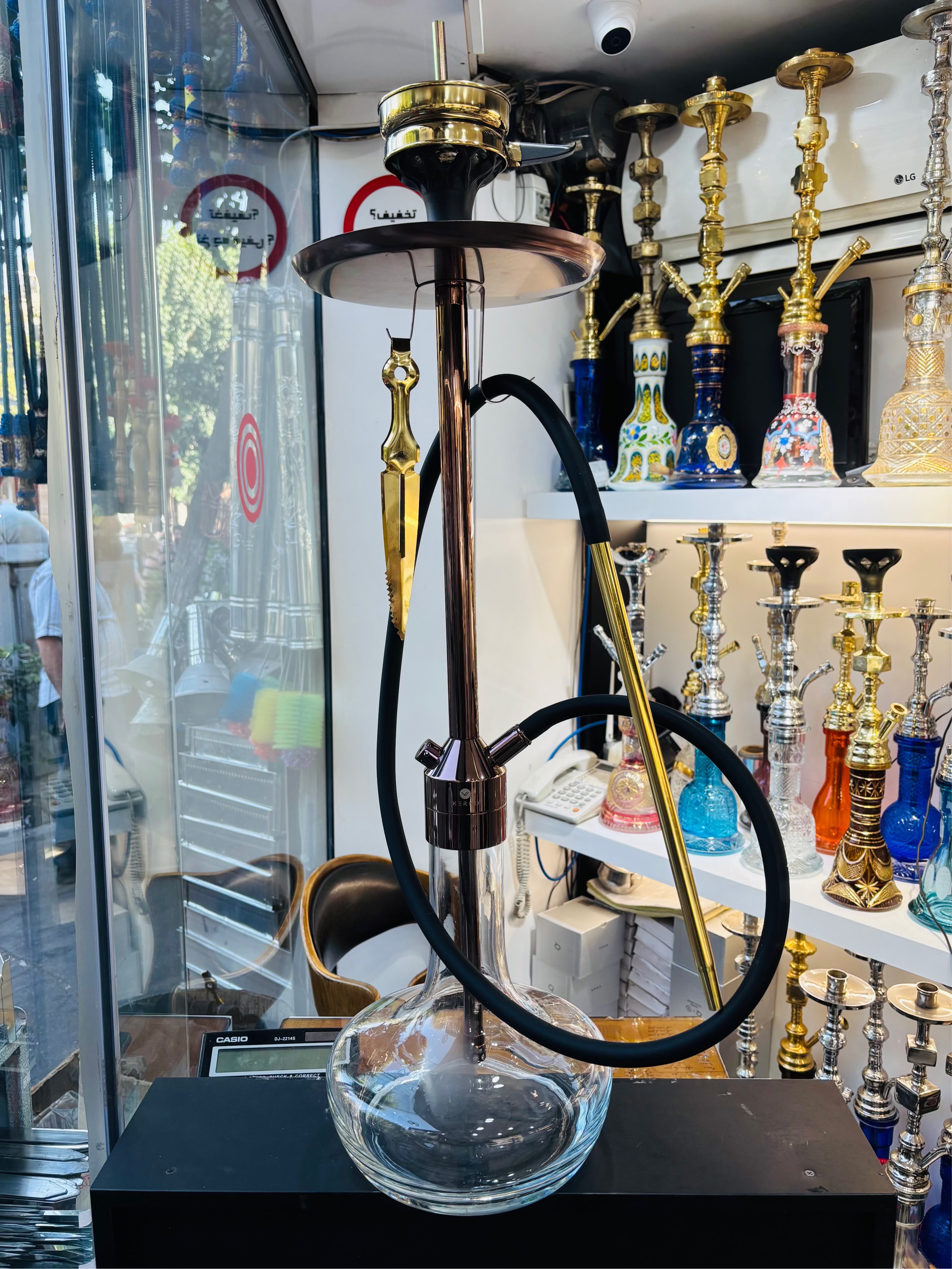 ست قلیان کرنو بزرگ مدل مادرید طلایی شیشه آیس نسکافه ایی
