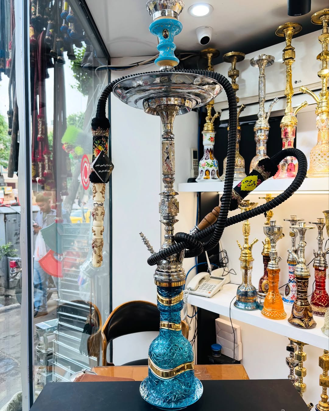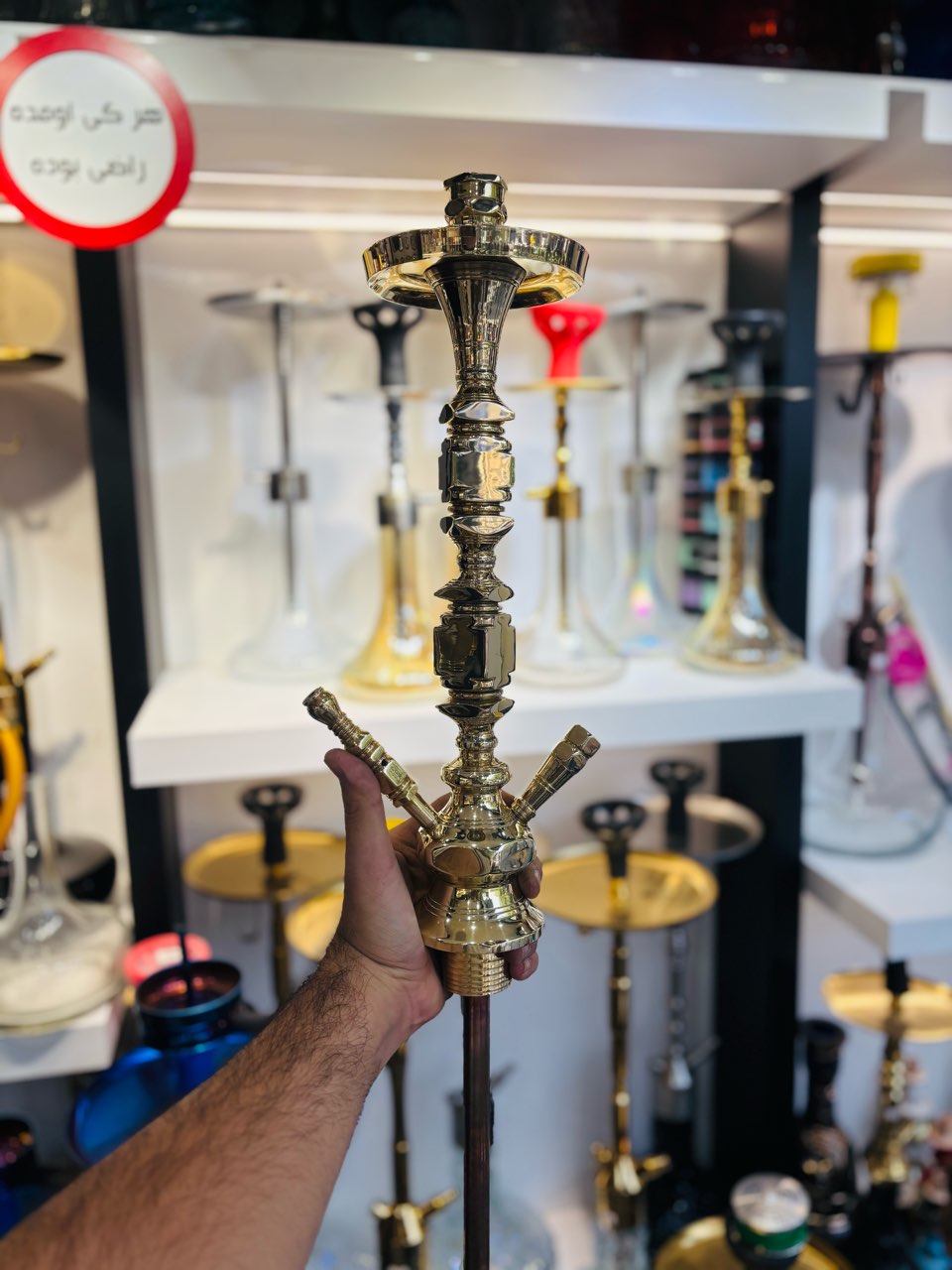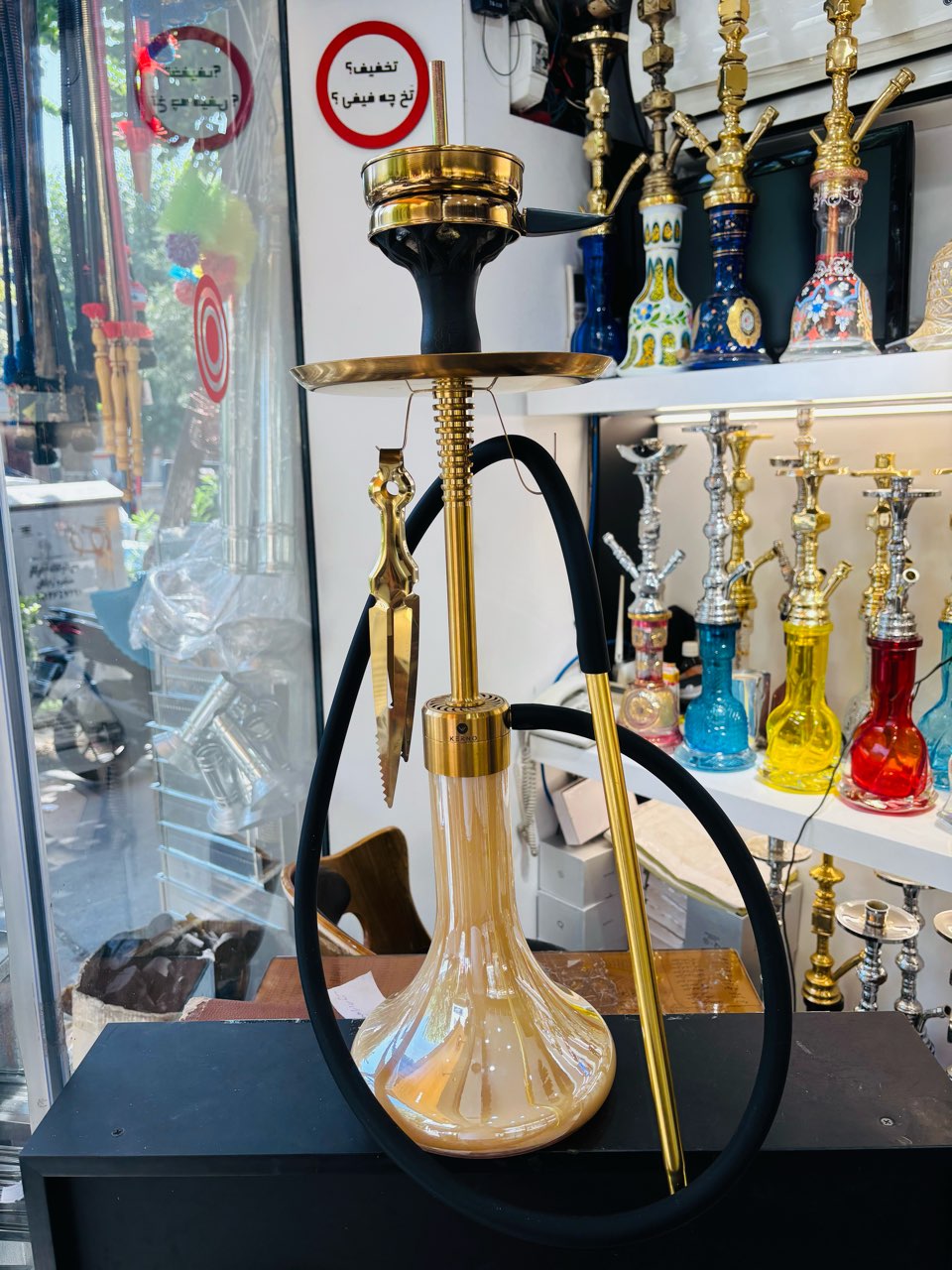 ست قلیان کرنو بزرگ مدل پاریس طلایی شیشه جیوه ایی