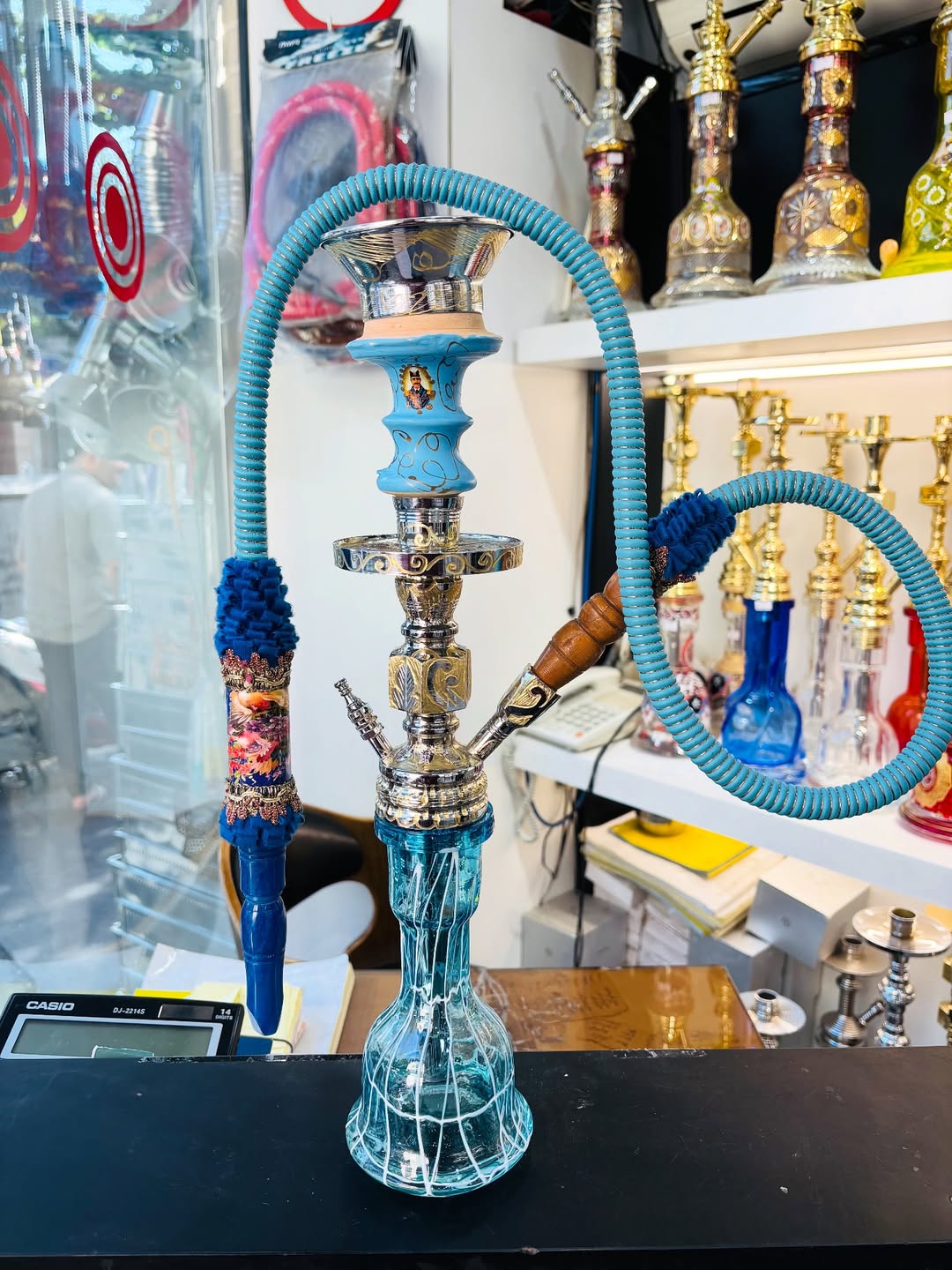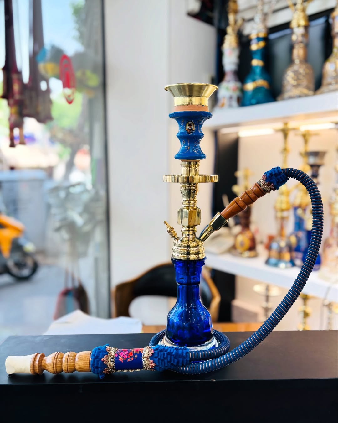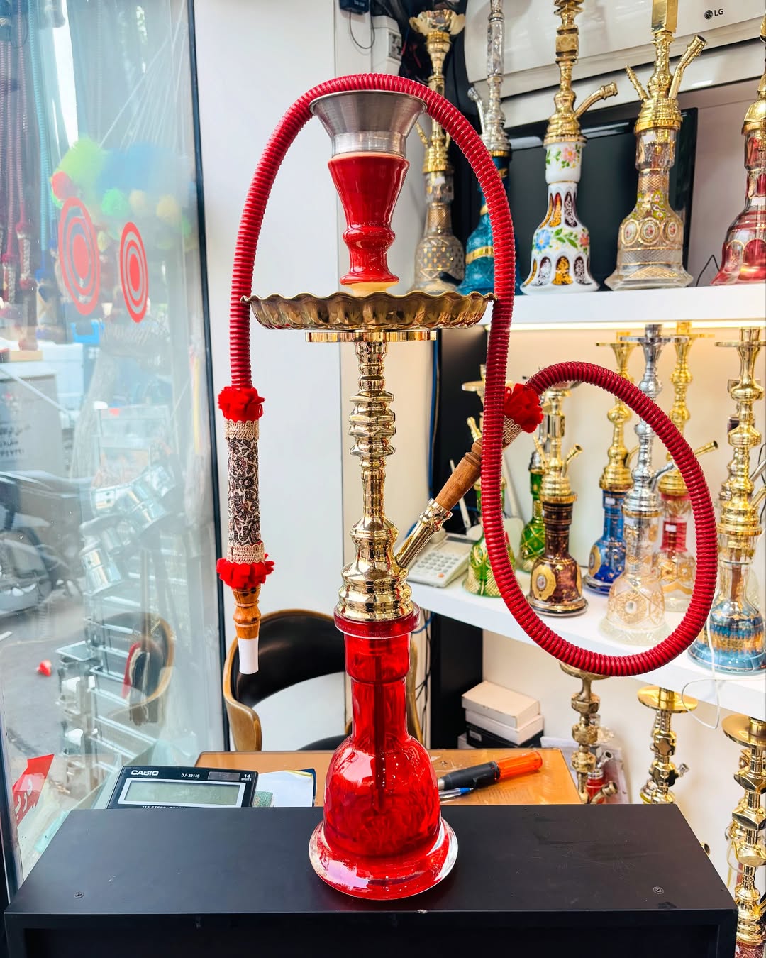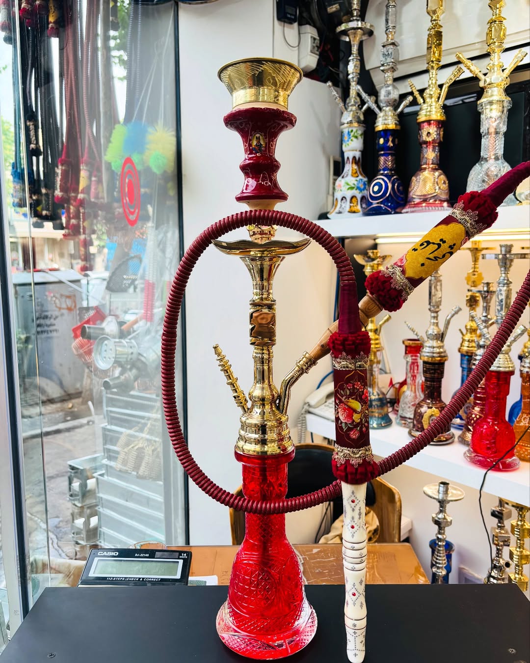 ست قلیان کرنو بزرگ مدل پاریس طلایی شیشه جیوه ایی