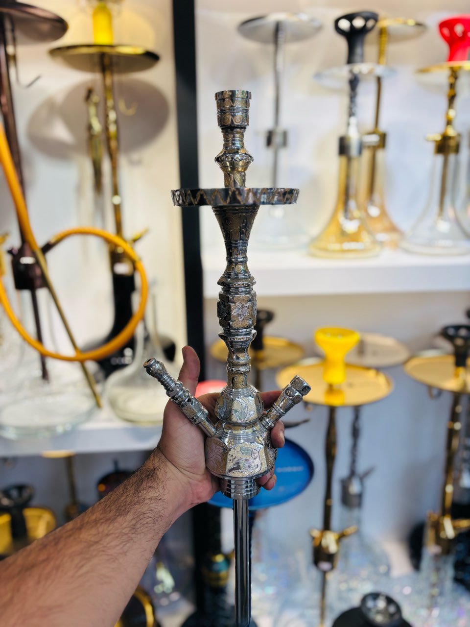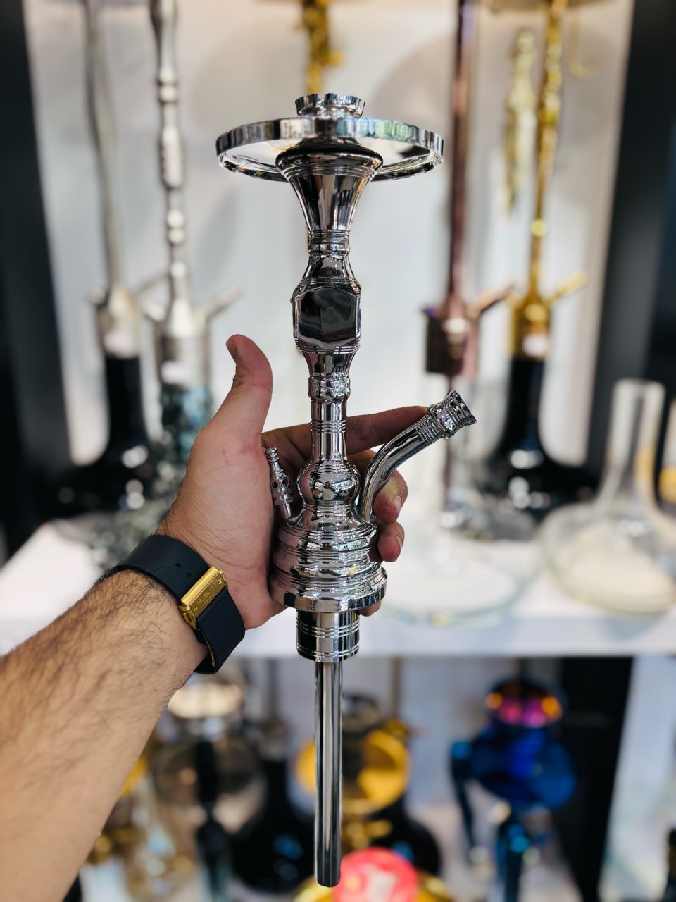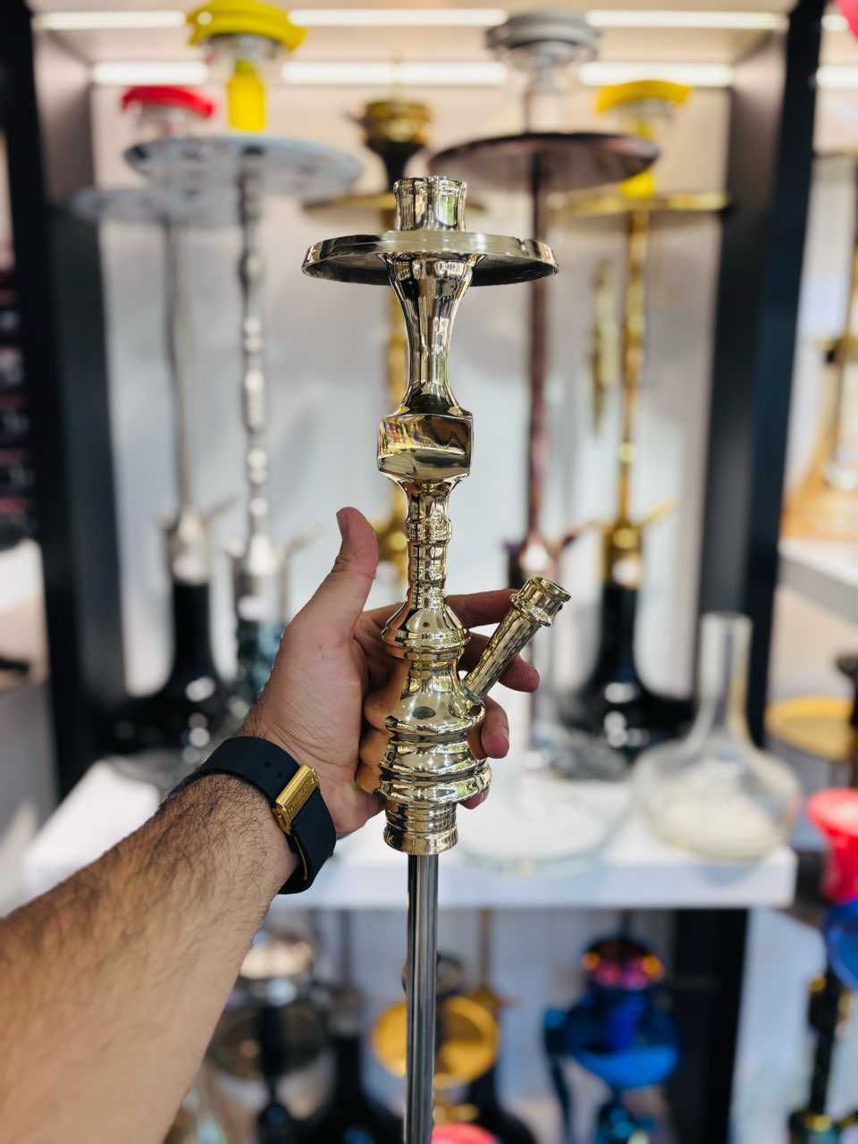 ست قلیان برنجی تنه گلابی ابکاری کروم