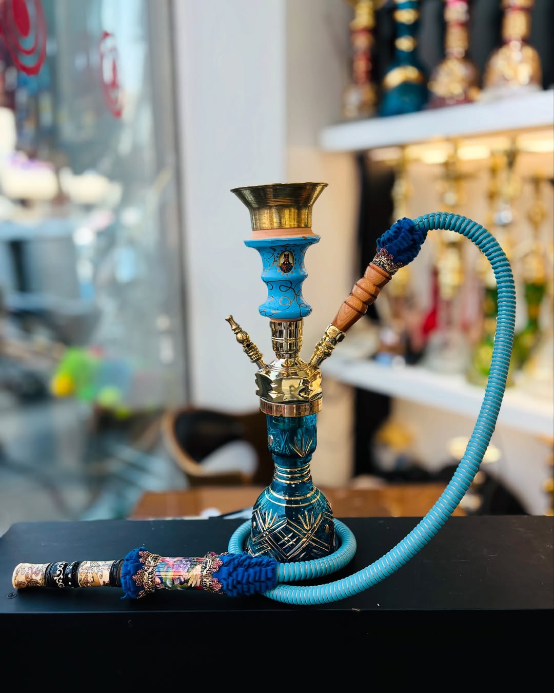 بدنه(تنه)برنجی قلیان سَرو شیش پَر آبکاری قلم