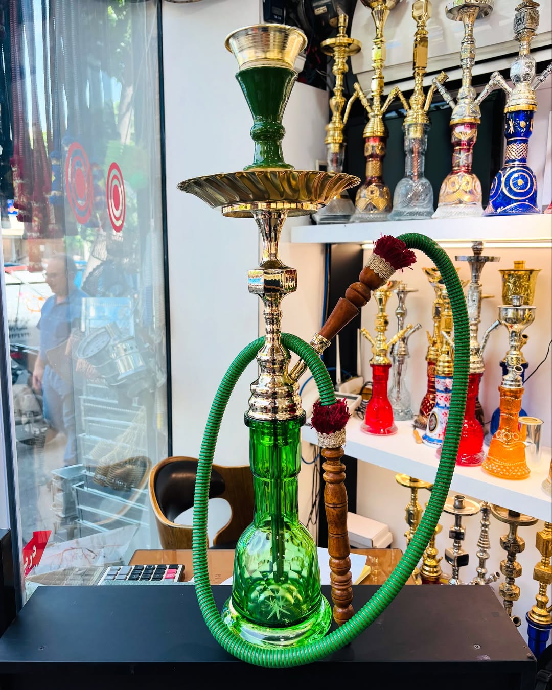 ست قلیان کرنو بزرگ مدل مونیخ سیلور شیشه آیس زیتونی