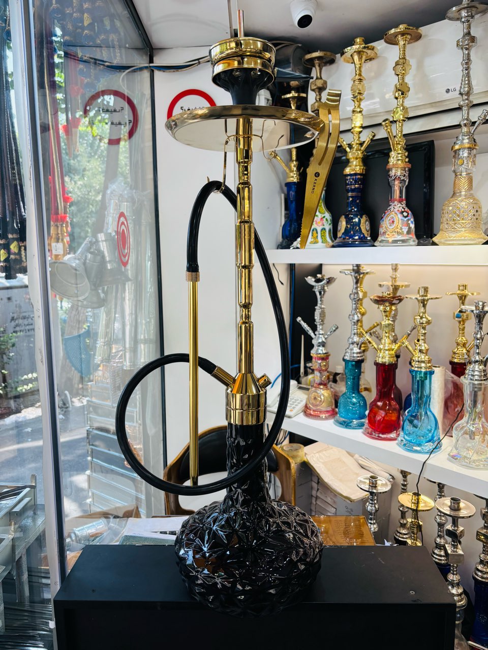 ست قلیان کرنو متوسط مدل دراگون طلایی شیشه مشکی