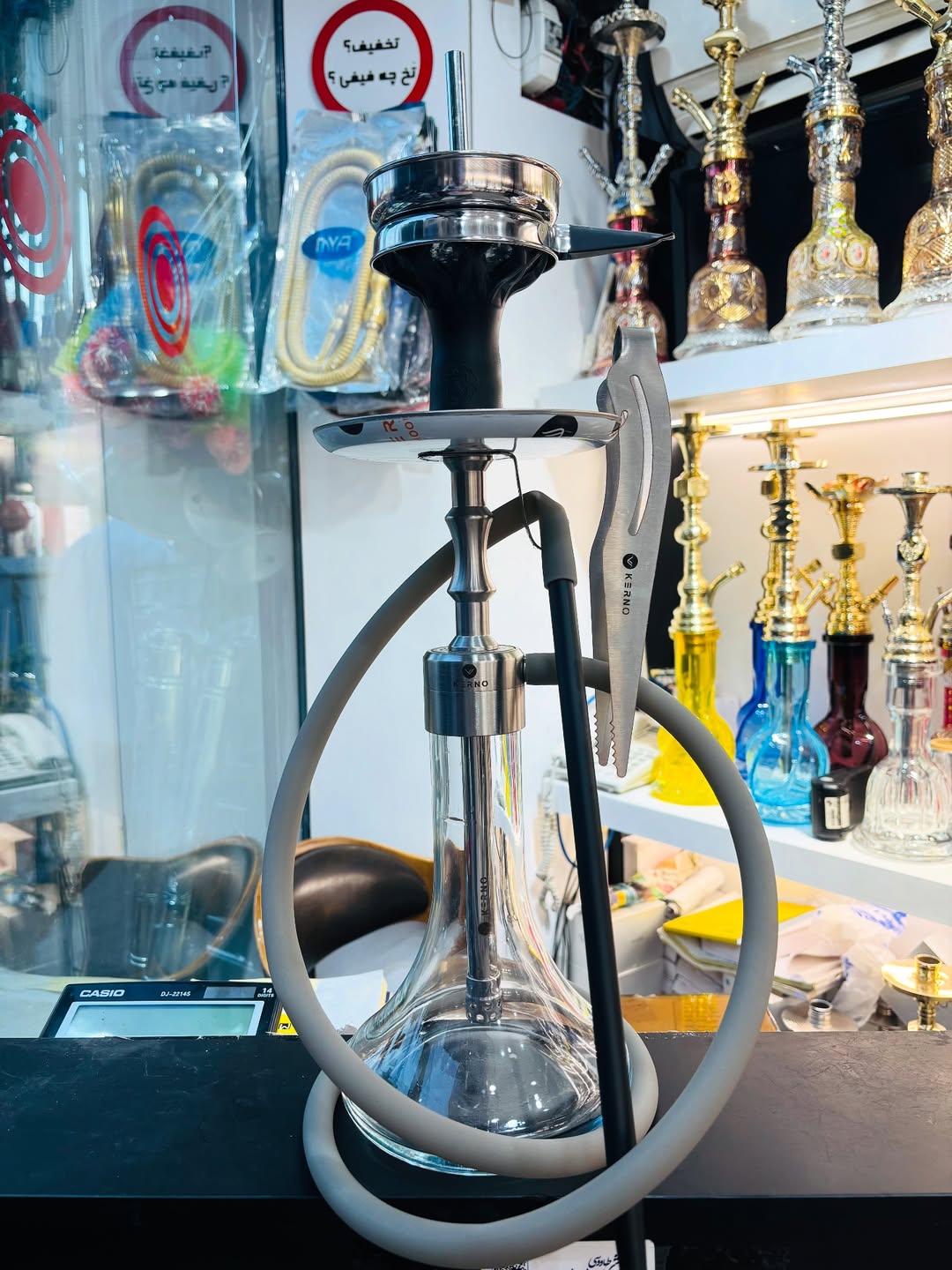 ست قلیان کرنو بزرگ مدل تگزاس سیلور شیشه دودی